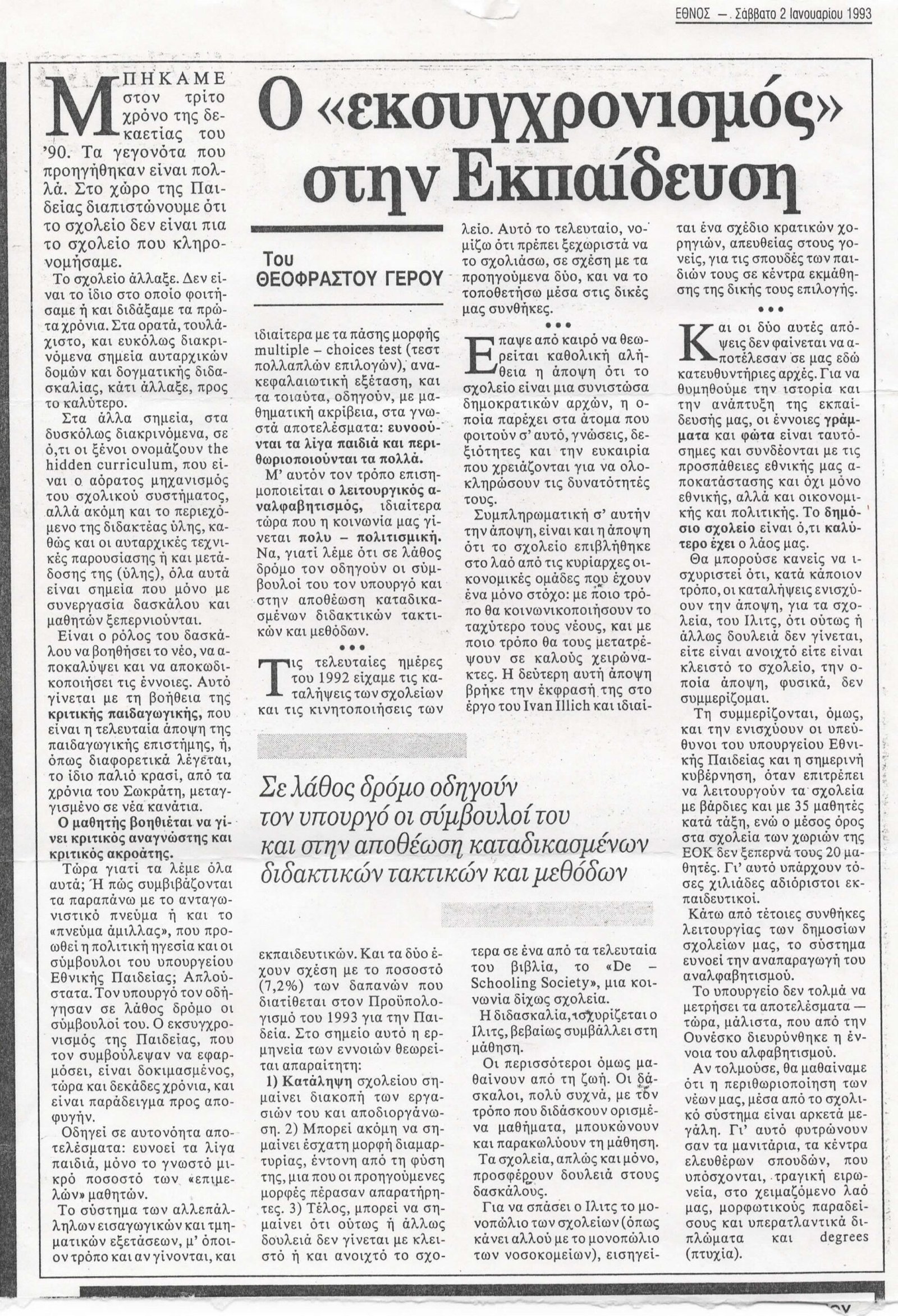 Εφημερίδα Έθνος 2 Ιανουαρίου 1993
